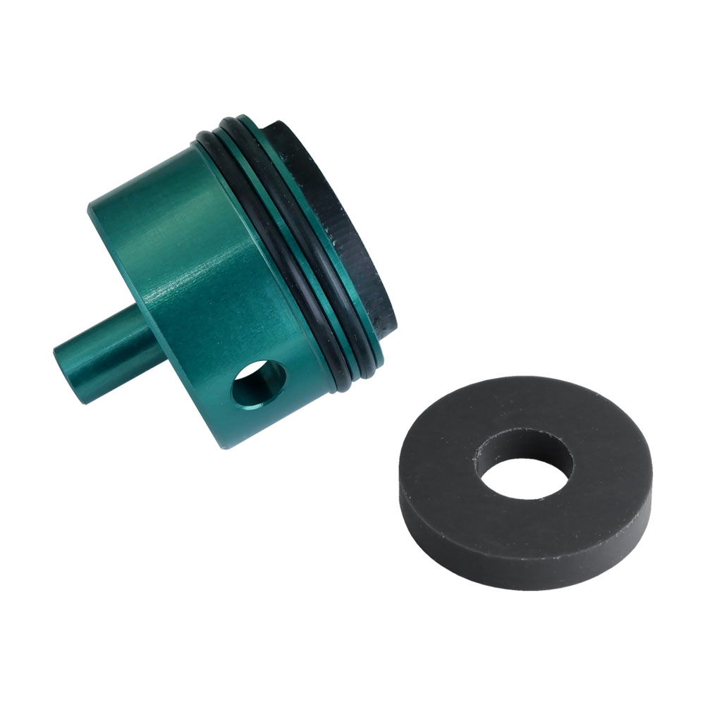 Głowica cylindra Protector została zaprojektowana tak, aby przedłużyć żywotność Geraboxa, zapewnić idealną szczelność na układzie oraz osiągnąć maksymalne wyniki podczas tuningu repliki. Dzięki dwóm zderzakom znajdującym się w zestawie jesteśmy w stanie ograniczyć zużycie się głowicy tłoka, jak i ograniczyć impet uderzanego tłoka w czoło szkieletu gearboxa, gdzie następują najczęstsze jego pęknięcia.