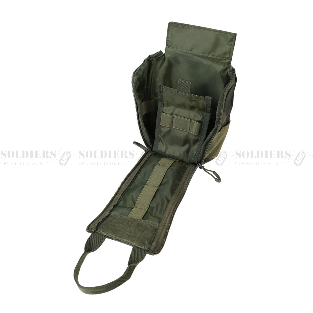 Dzięki dwóm zamkom oraz rzepowi, apteczka otwiera się błyskawicznie, umożliwiając natychmiastowy dostęp do niezbędnego wyposażenia. Wewnętrzny organizer z taśmami elastycznymi pozwala na uporządkowanie i łatwe odnalezienie potrzebnych przedmiotów, nawet w stresujących sytuacjach.
