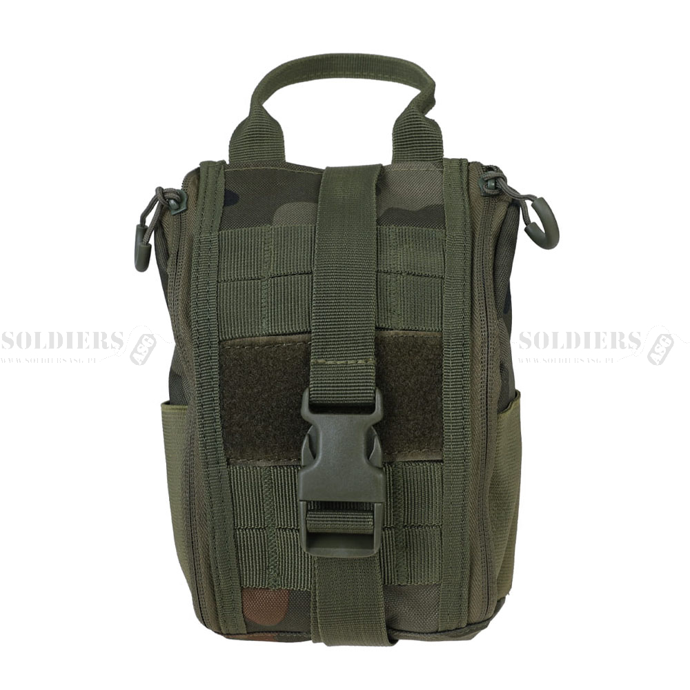 System Rip-Away oraz Panel nośny z D-ringami i trokiem z klamrą fastex umożliwiają szybkie i łatwe przymocowanie apteczki do kamizelek taktycznych, plecaków czy pasa. Duży uchwyt do szybkiego otwierania zapewnia jeszcze szybszy dostęp do apteczki w nagłych przypadkach.
