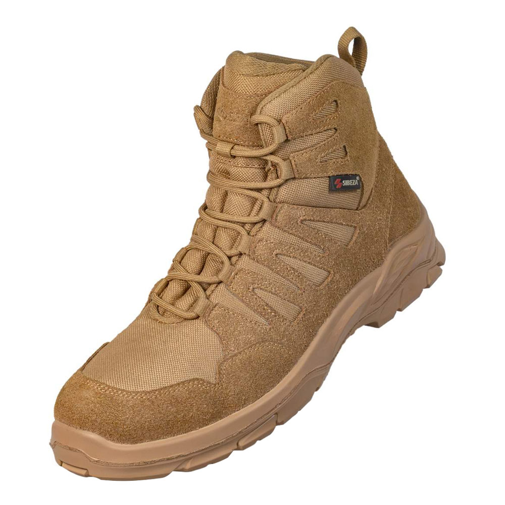 CHOLEWKA: naturalna wodoodporna skóra bydlęca welurowa, w kolorze COYOTE, połączona z impregnowaną wysoce odporną na uszkodzenia tkaniną techniczną; pętlowy system sznurowania składający się z wytrzymałych niemetalowych uchwytów pętlowych