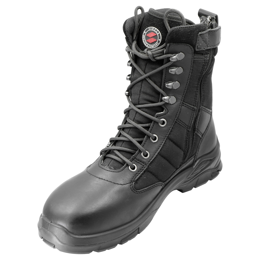 Cholewka: naturalna skóra bydlęca licowa, gładka w kolorze czarnym, połączona z impregnowaną wysoce odporną na uszkodzenia tkaniną techniczną; kołnierz: naturalna skóra welurowa doskonale dopasowująca się do nogi użytkownika; podwójny system zapinania składający się z przelotek do szybkiego sznurowania oraz dodatkowo od wewnętrznej strony wszyty zamek błyskawiczny YKK zakończony stoperem w postaci zapięcia na rzep