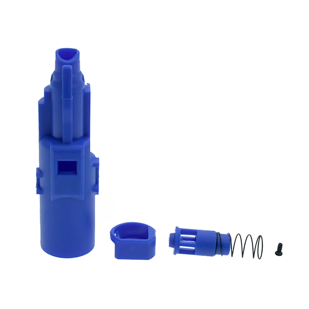 Army Armament R32 GBB Reinforced Nylon Nozzle Set to solidny zestaw tuningowy wykonany z wzmocnionego nylonu, który znacząco podnosi wytrzymałość i szczelność systemu podajnika w replikach typu GBB. Produkt został zaprojektowany do modeli takich jak R28, R32 (m.in. Excalibur, Earl) — wystarczy go zamontować, ponieważ zawiera już wewnętrzny zawór.