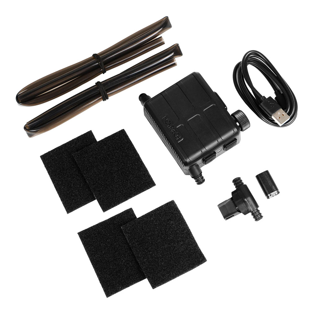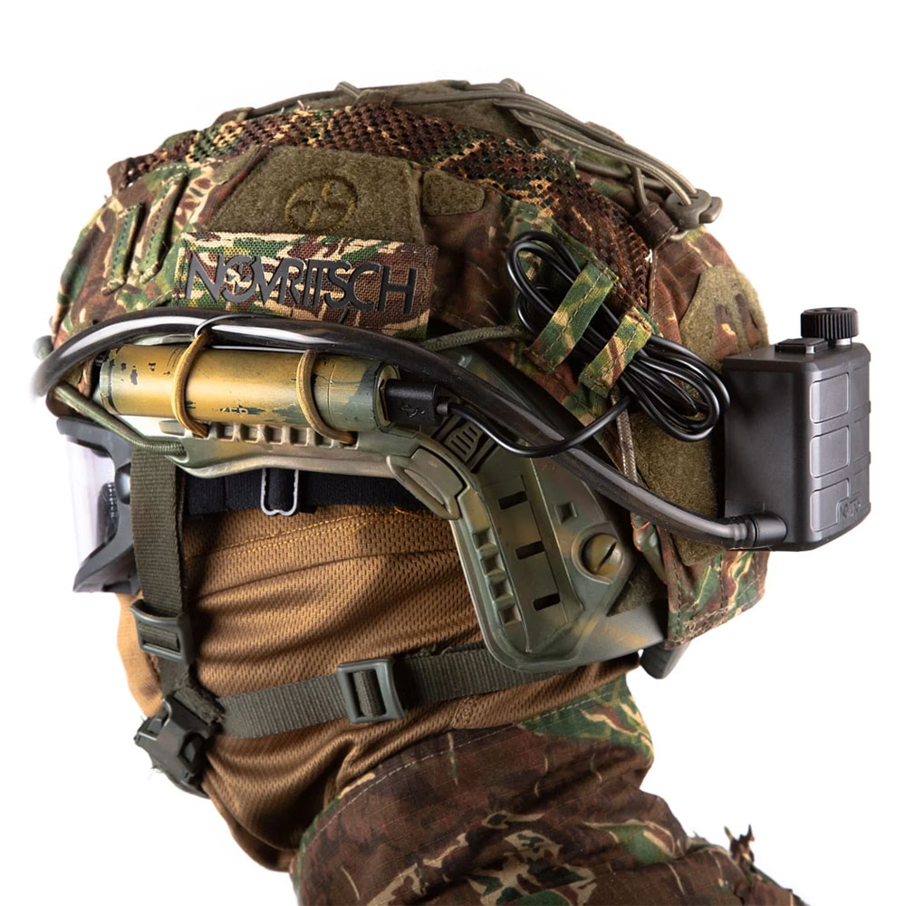 Dodatek do oporządzenia hełmu wykorzystujący bezgłośny silniczek aby rurkami wdmuchiwać chłodne powietrze do gogli. Pasuje praktycznie tylko do gogli marki Novritsch. W gogle wkładamy małą złączkę zawartą w zestawie tej jednostki i możemy potem do tej złączki podłączać i odłączać cały system dowoli i szybko, jako iż połączenie jest osiągane poprzez magnesy.