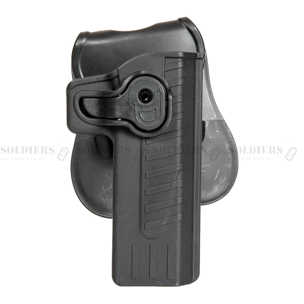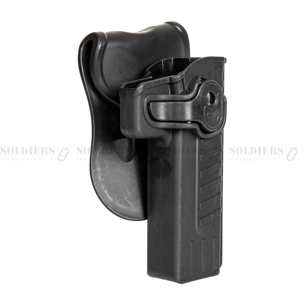 Lekka i wytrzymała polimerowa kabura dedykowana do replik pistoletów typu HI-CAPA. Kabura została wyposażona w regulowaną płetwę do mocowania na pasie o szerokości max 60mm. Prosta i skuteczna blokada zwalniana jest palcem wskazującym - doskonale chroni pistolet przed wypadnięciem, a dobywanie i chowanie pistoletu jest dzięki niej szybkie i intuicyjne.