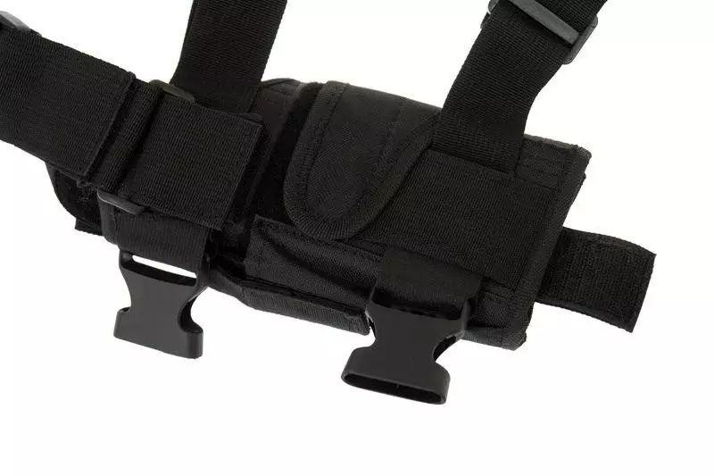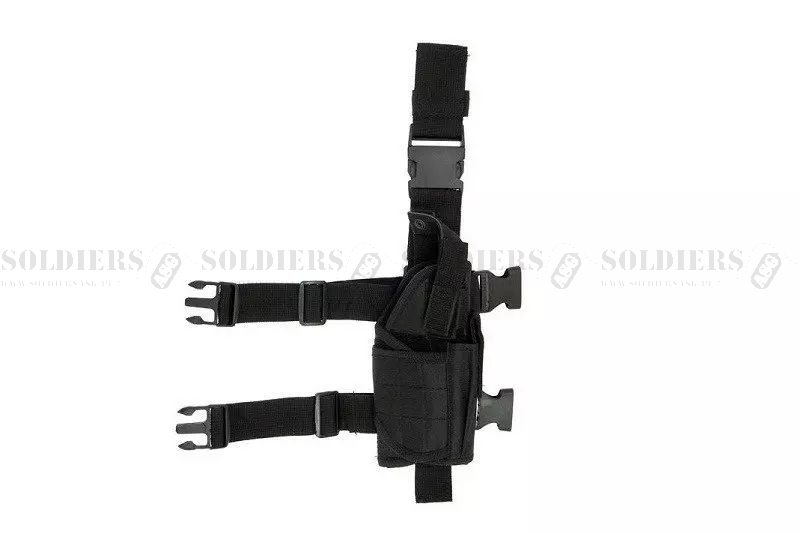 Kabura wykonana jest z nylonu. Dzięki zastosowaniu rzepów możliwe jest wyregulowanie i dostosowanie kabury do każdego typu repliki. Kabura ma zastosowanie uniwersalne. Regulowane pasy na udo zapinane są za pomocą klamer. Możliwe jest również całkowite wypięcie pasów, w zależności od potrzeb użytkownika. Pas mocujący do pasa biodrowego również posiada klamrę umożliwiającą szybkie odpięcie kabury od pasa. Na grzbiecie kabury znajduje się ładownica na magazynek.