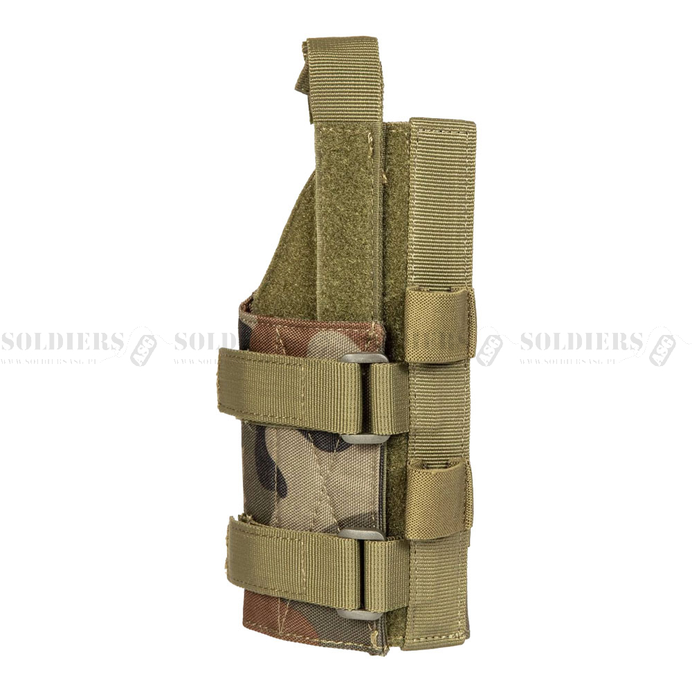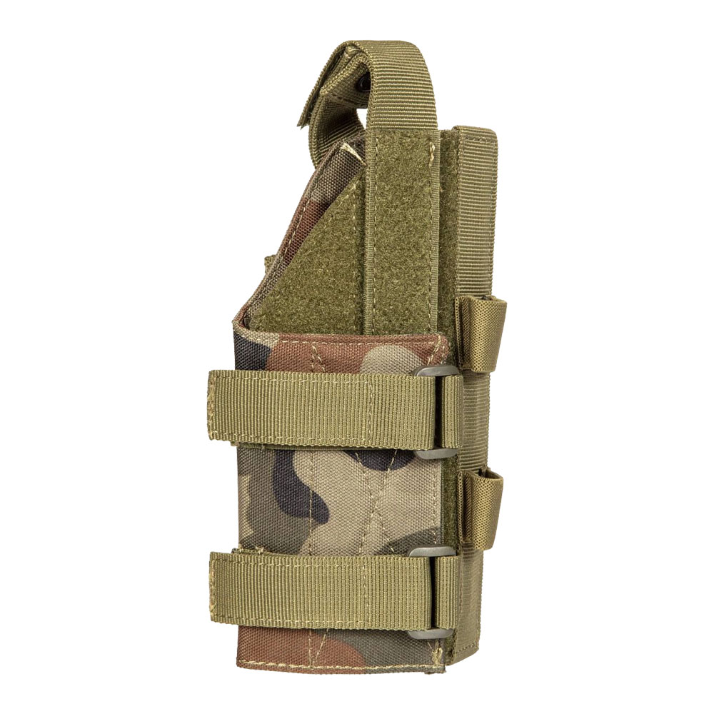 Kabura wykonana jest z wytrzymałego nylonu. Montowana jest za pomocą pasów Molle. Jej wysokość wynosi 195 mm z możliwością regulacji. Szerokość kabury jest również w pełni regulowana. Dzięki temu zmieści się do niej zarówno kompaktowy jak i duży pistolet oraz niestandardowe modele.