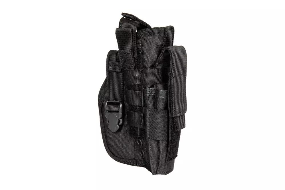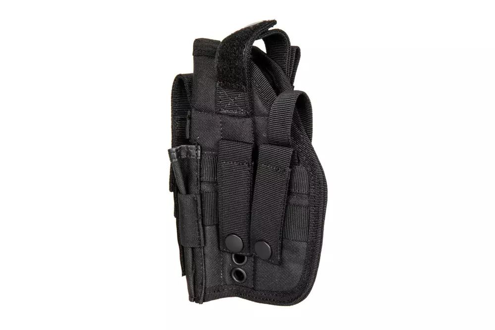 Kabura wykonana z wytrzymałego nylonu. Można ją zamontować na pasie bądź oporządzeniu przy użyciu taśm systemu modułowego MOLLE. Budowa kabury pozwala na przenoszenie w niej wielu typów replik - m.in. typu Colt 1911 oraz Glock.
