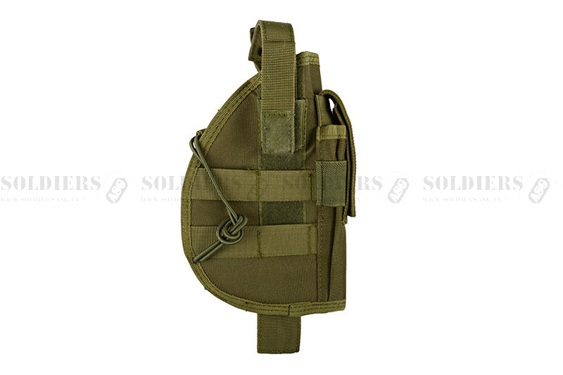 Kabura wykonana z wytrzymałego nylonu. Można ją zamontować na pasie bądź oporządzeniu przy użyciu taśm systemu modułowego MOLLE. Budowa kabury pozwala na przenoszenie w niej wielu typów replik - m.in. typu Colt 1911 oraz Glock.
