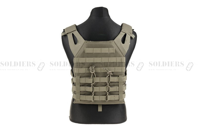 Bardzo lekka i funkcjonalna kamizelka typu plate carrier, uszyta z wytrzymałego nylonu. Zbudowana z dwóch paneli - przedniego oraz tylnego, połączonych lekkim, szkieletowym cummerbundem, który składa się jedynie z usztywnionych taśm. Nie ma problemu aby na tych taśmach zamocować dodatkowe kieszenie modułowe.