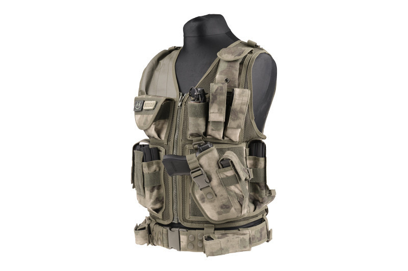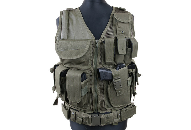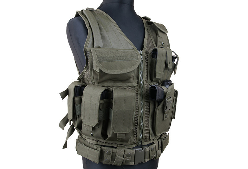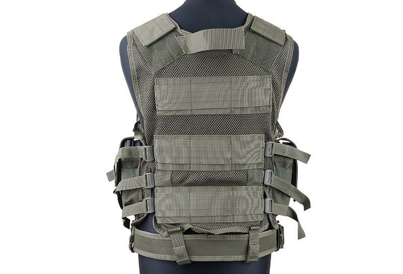 Kamizelka wykonana została na nylonowej siatce. Posiada po trzy pasy, w bocznych częściach, regulujące jej rozmiar. Na części plecowej znajdują się trzy pasy szerokości 50mm. Kamizelka dzieli się na dwie części i zapinana jest za pomocą zamka błyskawicznego. Na prawej klapie znajdują się trzy pojedyncze ładownice na magazynki w standardzie Stanag oraz podręczna kieszeń z rzepem do zamontowania naszywki.