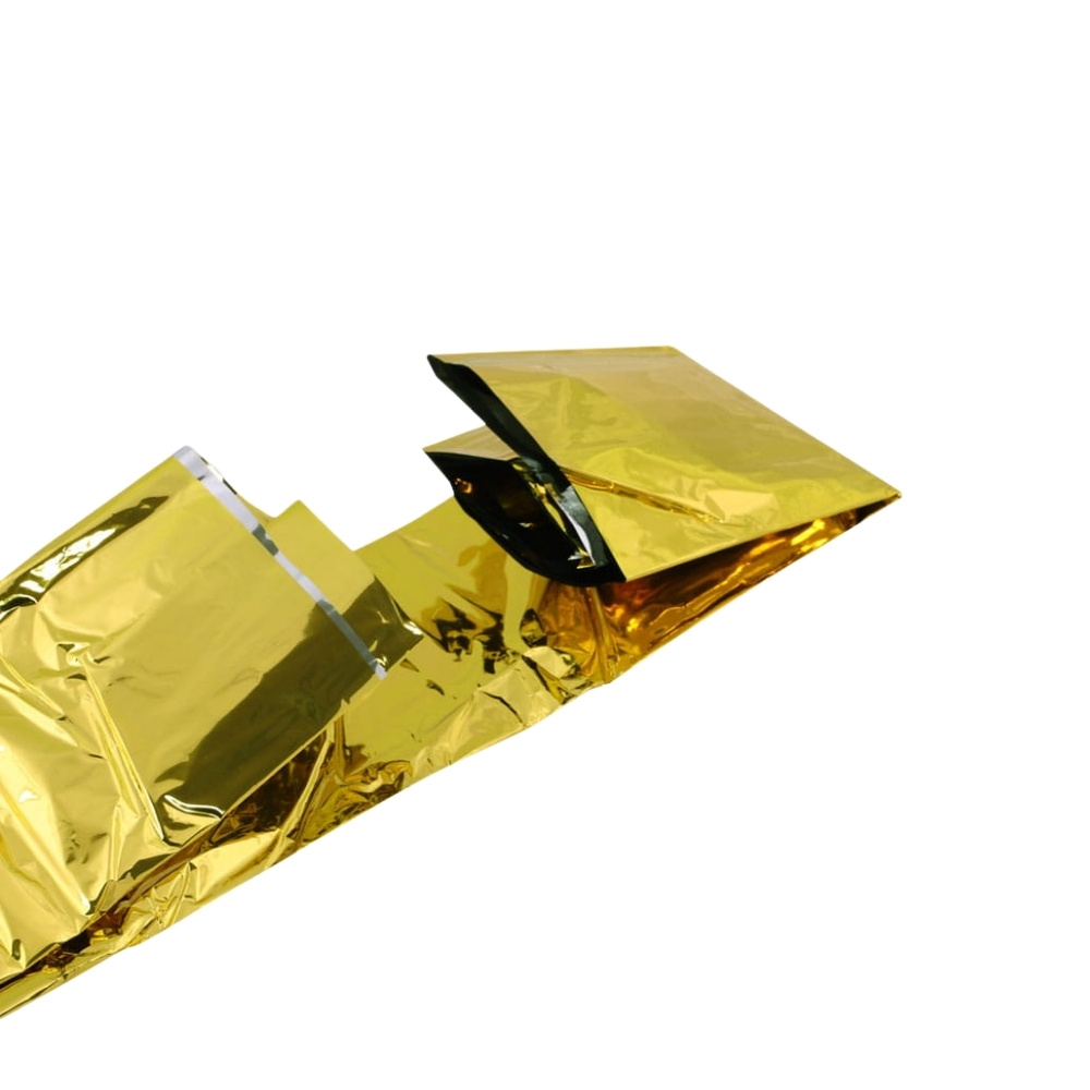 w celu ochrony przed przegrzaniem — stronę złotą kierujemy do ciała, by odbijała promienie słoneczne i zmniejszała nagrzewanie.