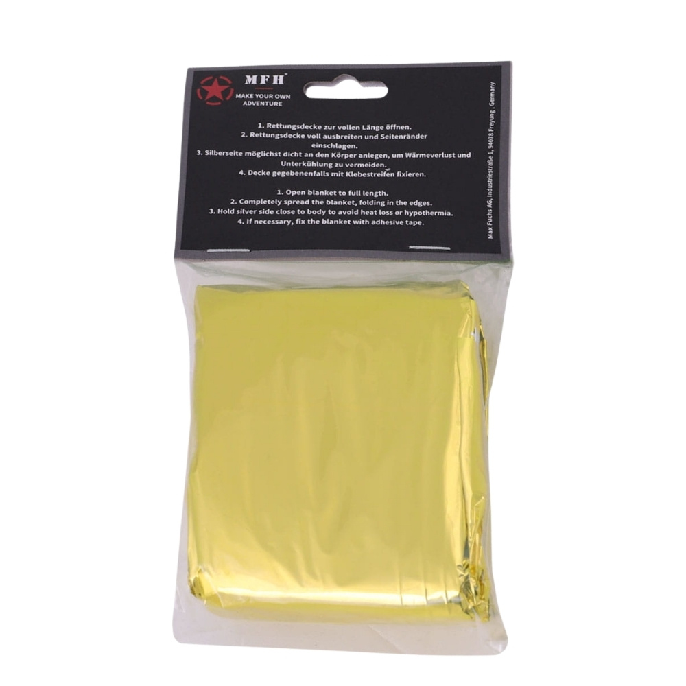 Koc termiczny ratunkowy NRC 213 × 132 cm od niemieckiej marki MFH to jeden z najważniejszych elementów wyposażenia awaryjnego — niezależnie od tego, czy znajduje się w samochodzie, plecaku, apteczce, czy zestawie EDC. Wykonany z aluminiowanej folii poliestrowej, jest dwustronny, wodoodporny, chroni przed wiatrem i zapewnia skuteczną barierę przed utratą ciepła lub przegrzaniem. Dzięki niewielkim wymiarom po złożeniu łatwo zmieści się w kieszeni lub schowku, a jego niewielka waga (60 g) sprawia, że można mieć go zawsze pod ręką.