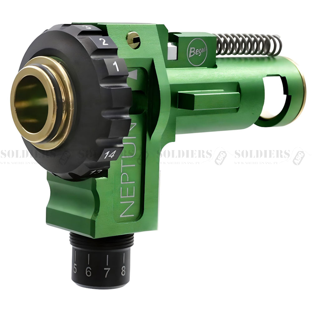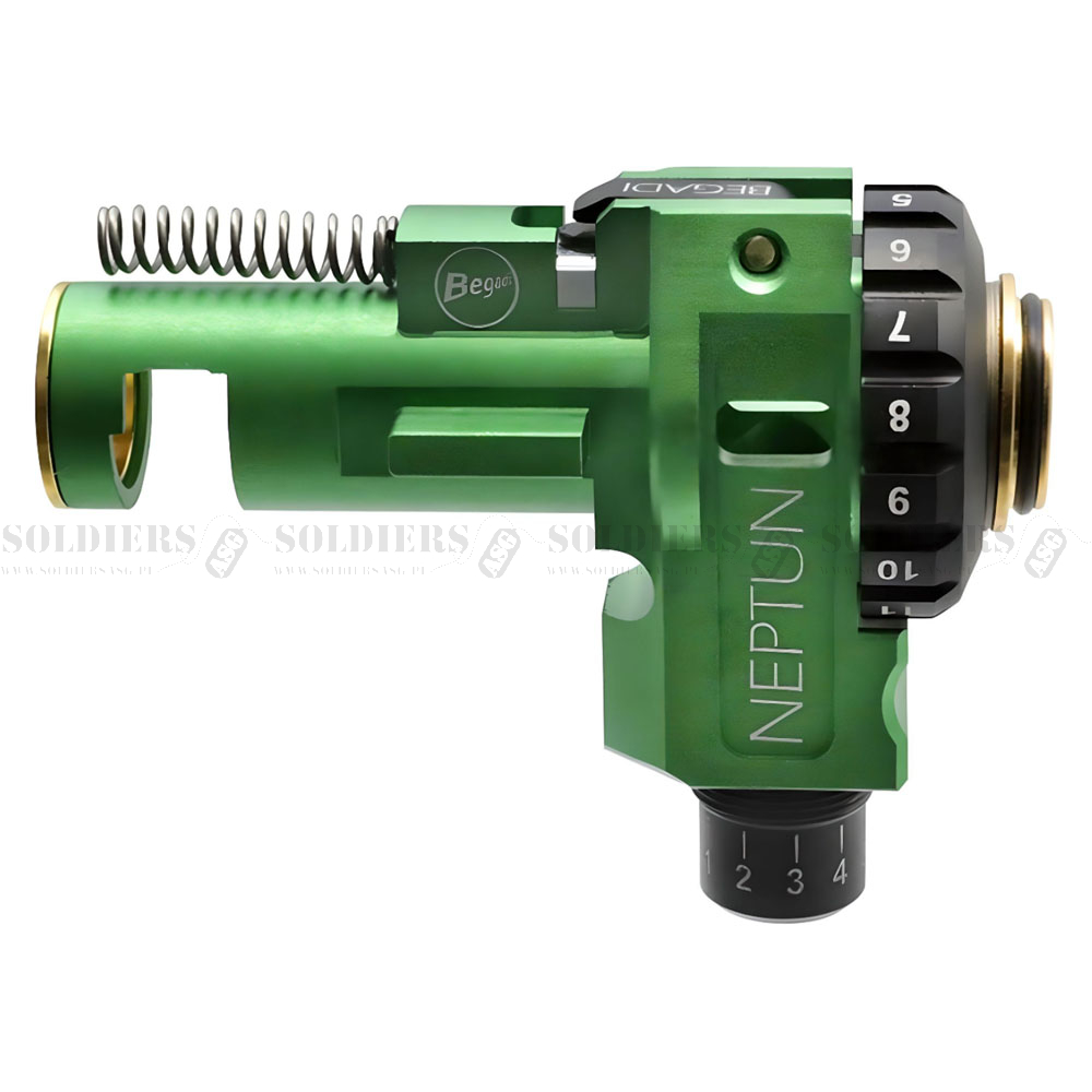 Ten cel osiągnięto dzięki elastyczności NEPTUN. Ta jednostka HopUp może być łatwo dostosowana do odpowiedniej długości bez konieczności demontażu przekładni i wymiany dyszy. Aby zoptymalizować podawanie różnych magazynków, kanał ładowania można regulować za pomocą gwintu. Odległość - od jednostki HopUp do odbiornika - można również precyzyjnie wyregulować za pomocą zintegrowanej śruby.