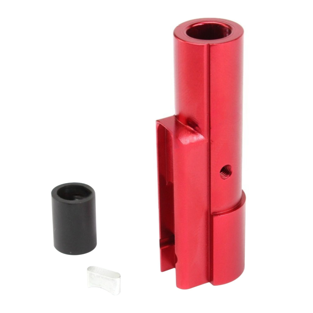 W zestawie znajduje się gumka Hop-Up. Jest podobna do typu VSR, ale ma węższy wlot dla lepszego uszczelnienia. Dużą różnicą jest wyprofilowany docisk kulki wewnątrz, który lepiej i na większej powierzchni przylega do kulki airsoftowej. Jest to również wspierane przez metalowe ramię. Powierzchnia styku gumowego docisku z kulką jest zatem większa, a obrót kulki jest bardziej stabilny.
