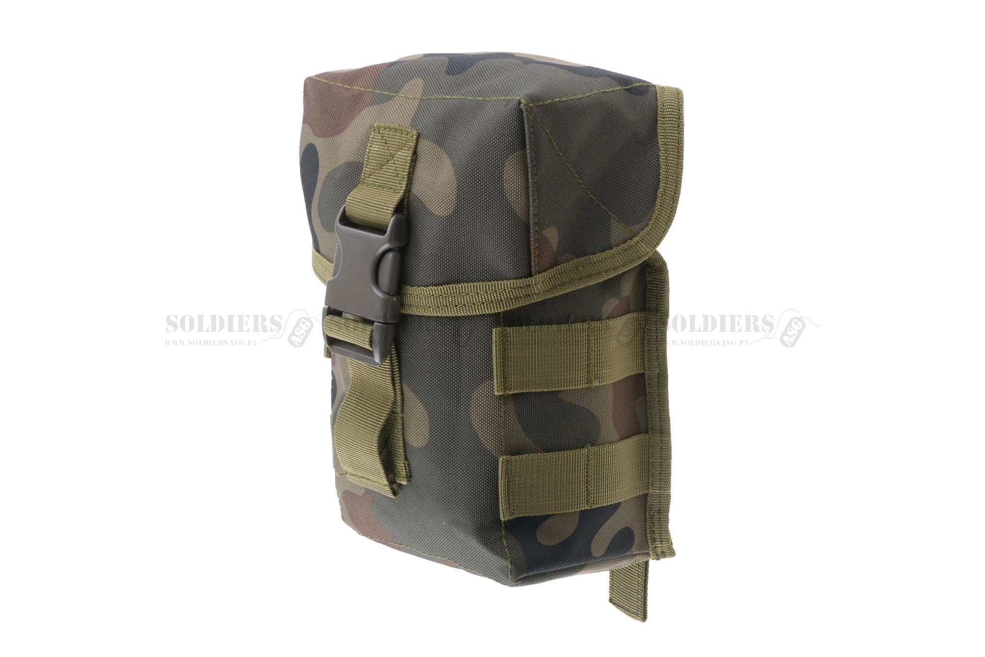 Wykonana z wytrzymałego nylonu, prosta, zamykana na klamrę ładownica typu cargo na wyposażenie. Idealna do przenoszenia butelki/paczki kulek. Na dole ładownicy umieszczono otwór drenażowy, po bokach zaś palsy molle do przeczepienia dodatkowych ładownic.