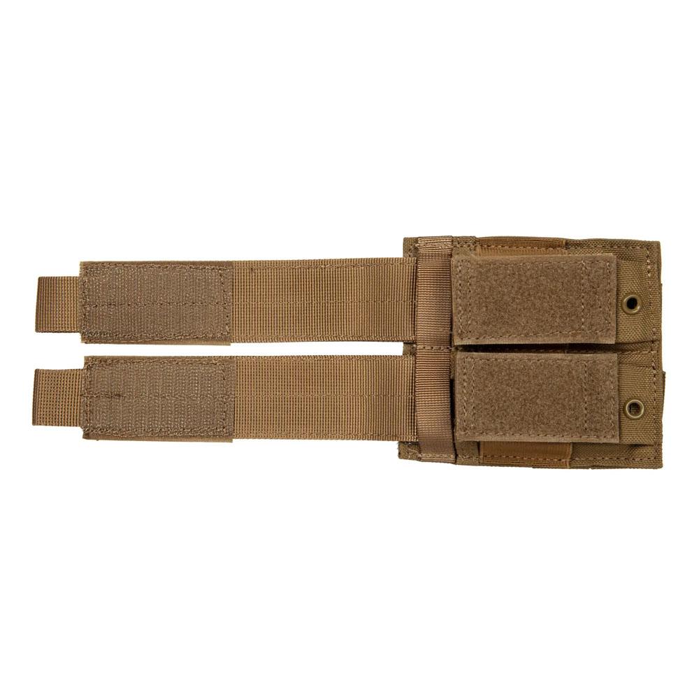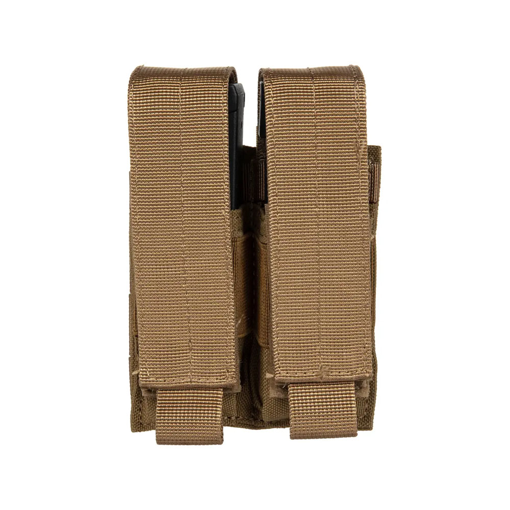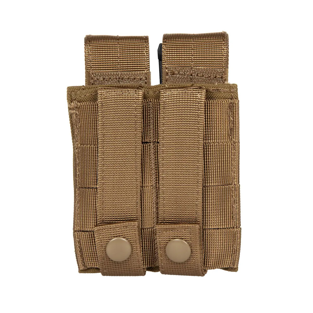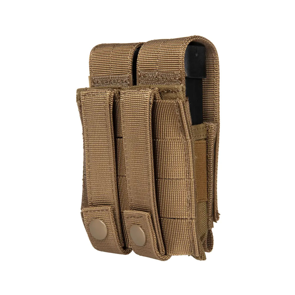 Wykonana z wytrzymałego Nylonu 1000D ładownica mieszcząca dwa magazynki pistoletowe. Na bokach ładownicy naszyto elastyczne ściągacze pozwalające na bezpieczne przenoszenie zarówno magazynków jedno i dwurzędowych.