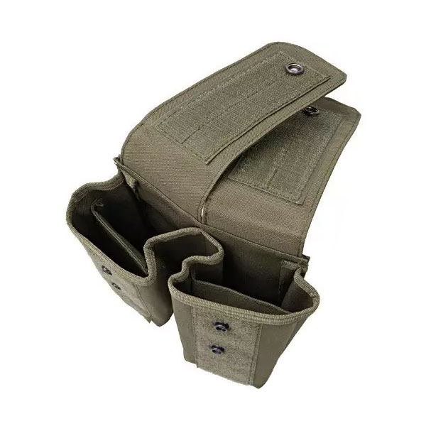 Wykonana z wytrzymałego nylonu podwójna ładownica na w sumie 4 magazynki typu AK i podobne. Każda z komór ładownicy zaopatrzona jest w otwór drenażowy pozwalający odprowadzić ewentualnie nagromadzoną wodę oraz zamykana przy użyciu zaopatrzonej w rzep i klamrę nylonowej pokrywy.