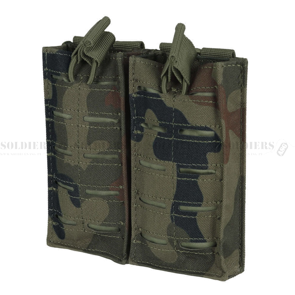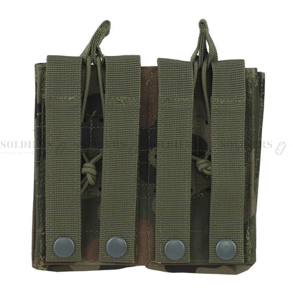 Podwójna ładownica na magazynki wykonana została z wytrzymałego poliestru 600D. Magazynki utrzymywane są w kieszeniach dzięki elastycznym linkom shock-cord, co pozwala na ich szybkie dobycie.