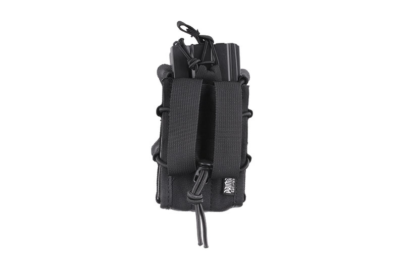 Wykonana z wytrzymałego nylonu przez Primal Gear podwójna ładownica uniwersalna typu shingle na 2 magazynki, która dzięki dzięki możliwości regulowania objętości pomieści magazynki typu AK / M4 / G36 / M14 / SR25 oraz wiele innych. Magazynek jest od góry zabezpieczony przed wypadnięciem elastyczną linką shock-cord.