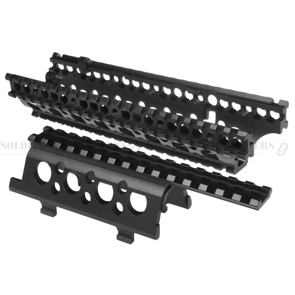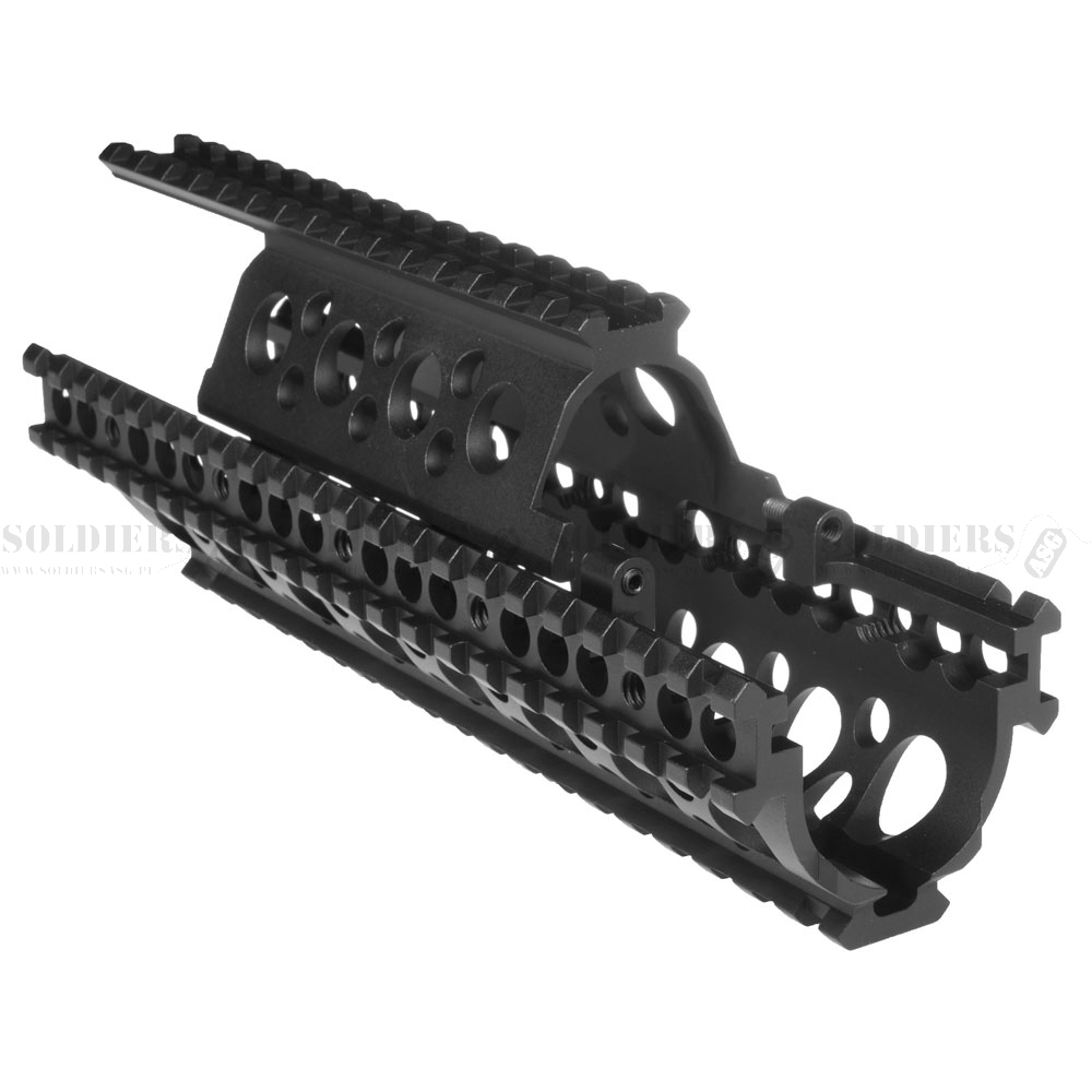 Wykonany z aluminium front przeznaczony do replik długich karabinów AK. Posiada 4 wbudowane szyny RIS.