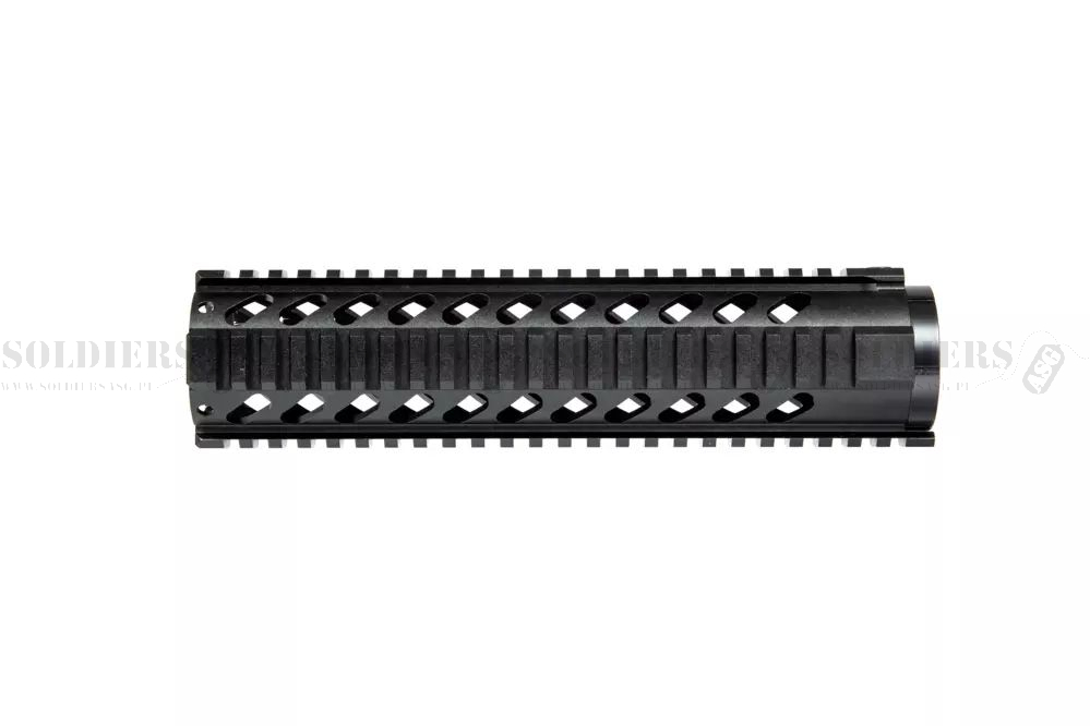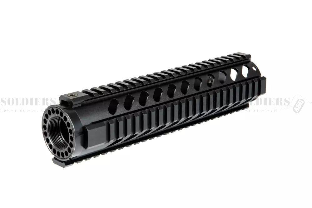 Frontowa szyna montażowa RIS 22 mm 10" od marki Specna Arms. Produkt ma długość 260 mm i został wykonany z aluminium obrabianego na precyzyjnych maszynach CNC. Szyna dedykowana jest do mocowania w replikach typu M4/M16.