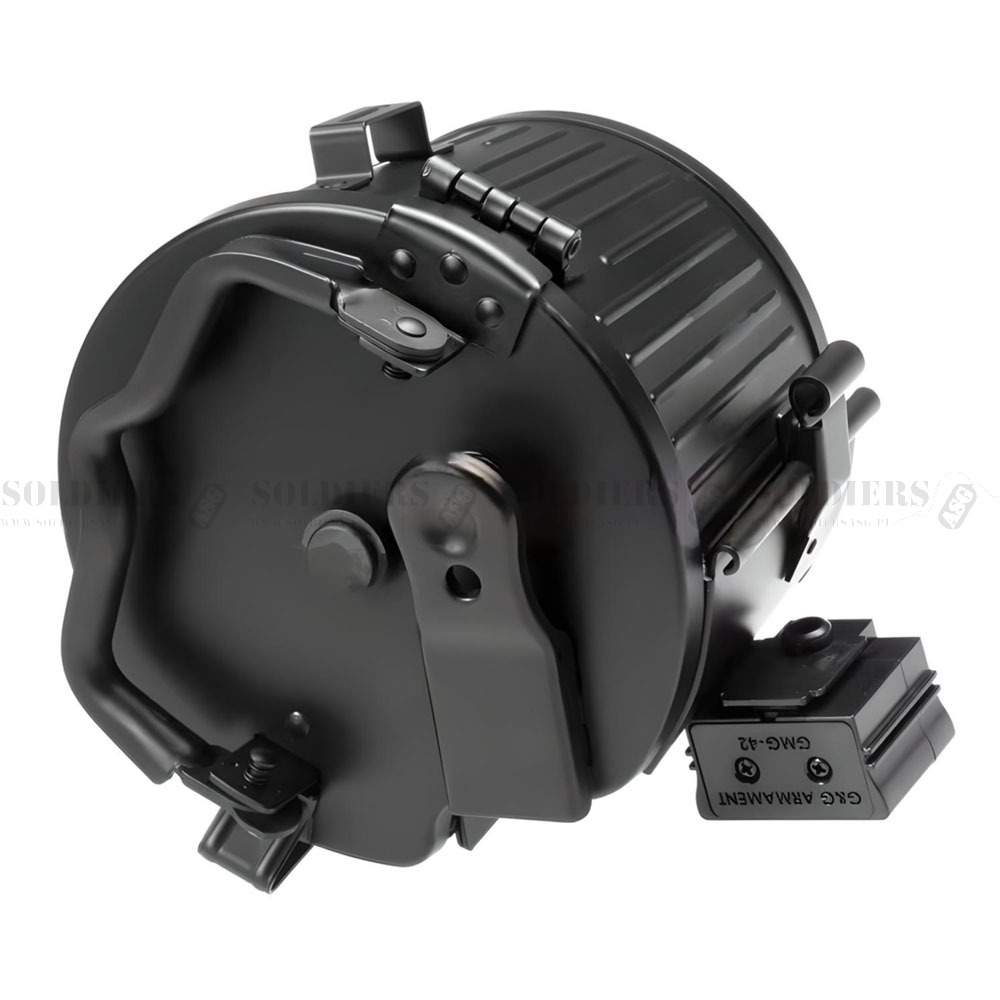 Magazynek bębenkowy do repliki GMG42, o pojemności 1700 kulek.