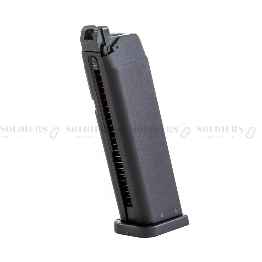Wykonany z metalu zapasowy magazynek przeznaczony do pistoletów KP-13. Magazynek mieści 24 kulki, zasilany jest za pomocą Green Gazu.