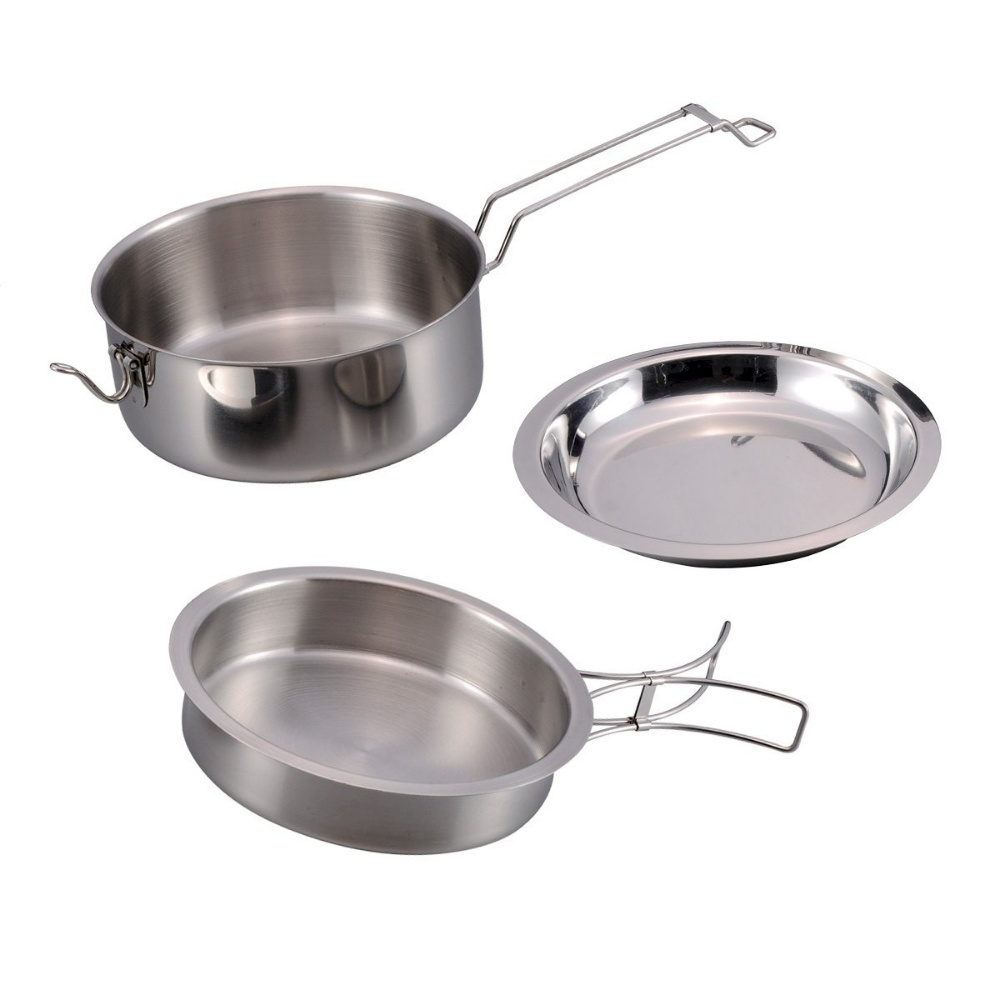 Lekka i wytrzymała menażka wykonana w całości ze stali nierdzewnej, zaprojektowana z myślą o wspólnych wyprawach i biwakach. Zestaw składa się z trzech elementów, które mieszczą się jeden w drugim, a składane rączki ułatwiają transport i przechowywanie. Idealna do gotowania i serwowania posiłków dla dwóch osób.
