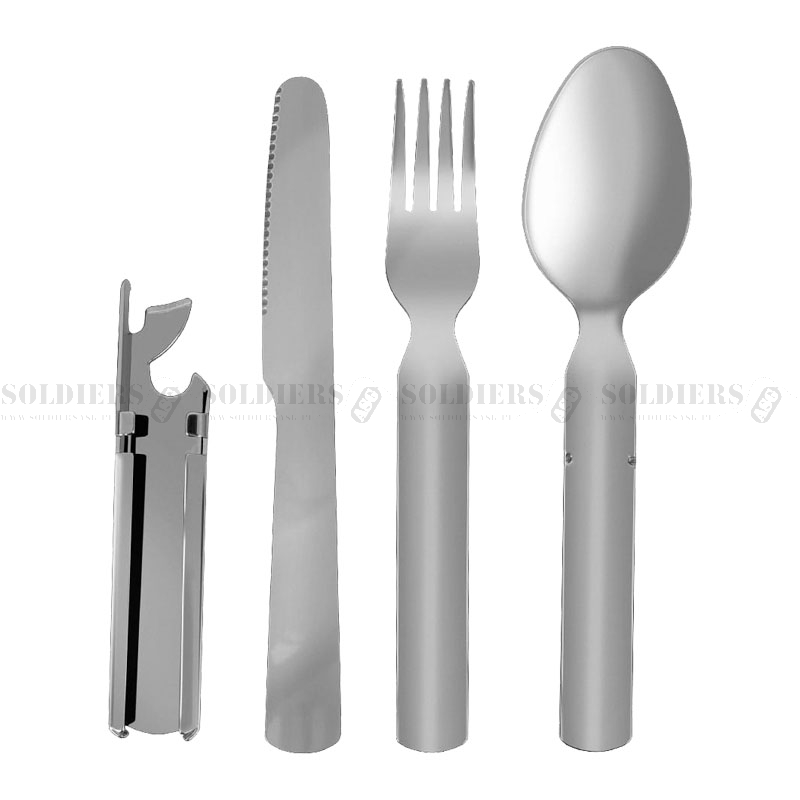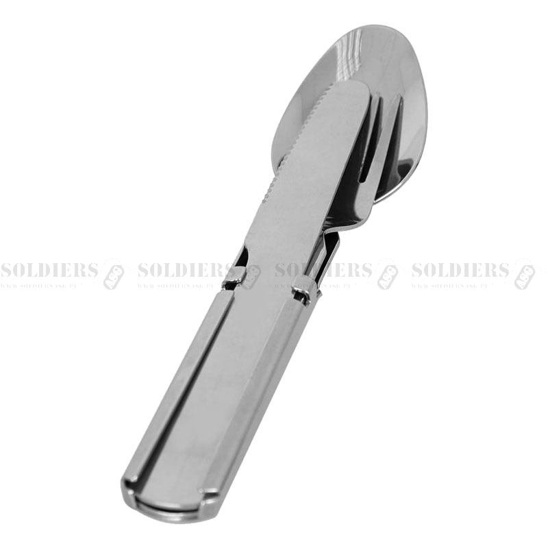 Łyżka i pełnowymiarowy widelec wykonane są z wysokiej jakości, polerowanej stali nierdzewnej. Gruba stal sprawia, że sztućce są bardzo solidne, nie wyginają się i są odporne na wysokie temperatury. Rękojeść do składania całości w jeden ergonomiczny element.