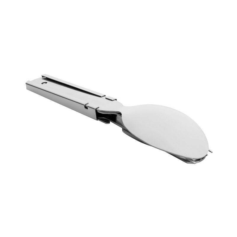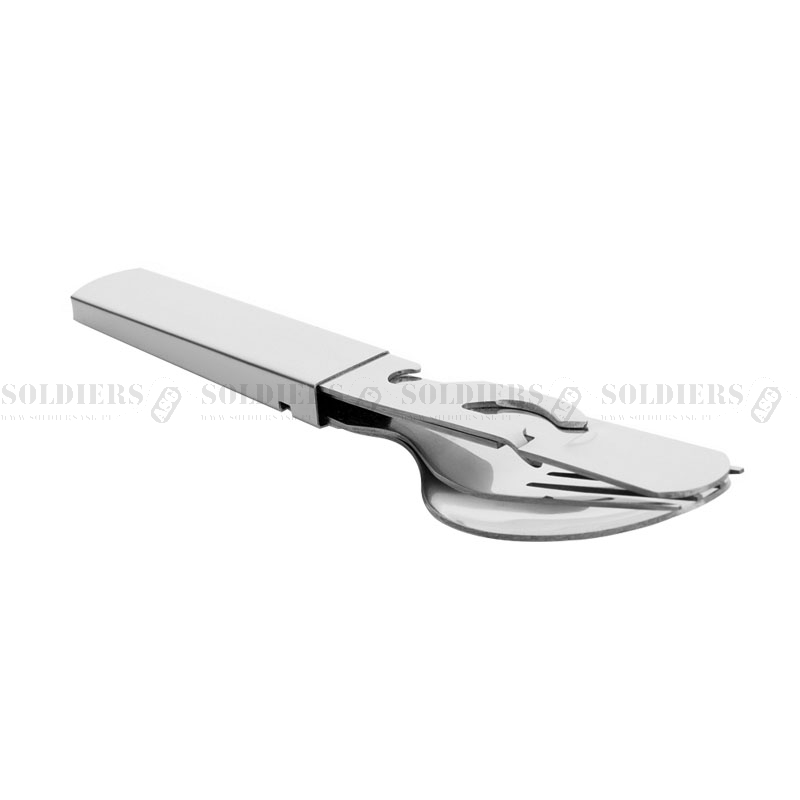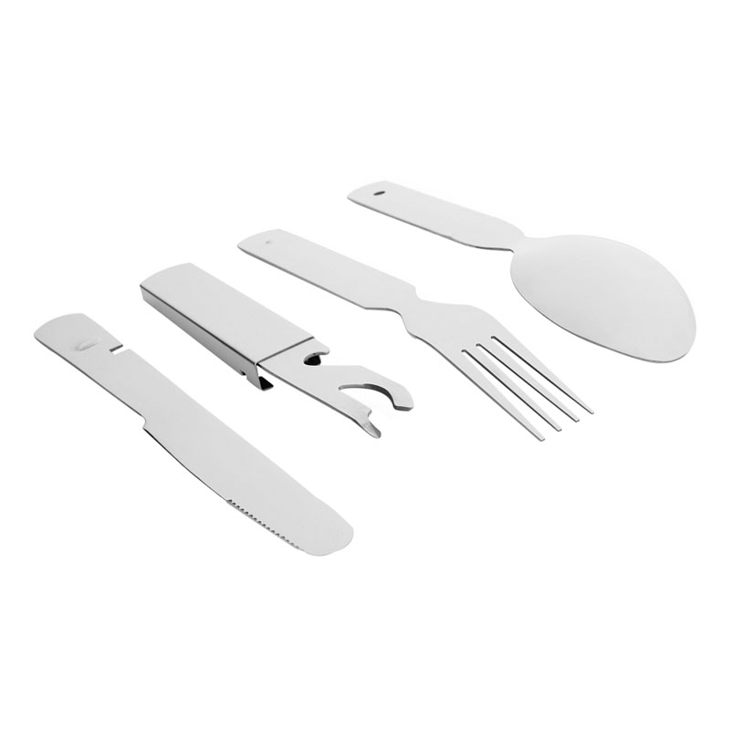 Uniwersalny niezbędnik od brandu M-Tac. Zestaw składa się z czterech elementów (łyżka, widelec, nóż oraz uniwersalny otwieracz, będący jednocześnie uchwytem na cały zestaw). Prosty, wygodny i niezawodny zestaw na wędrówki i kemping.