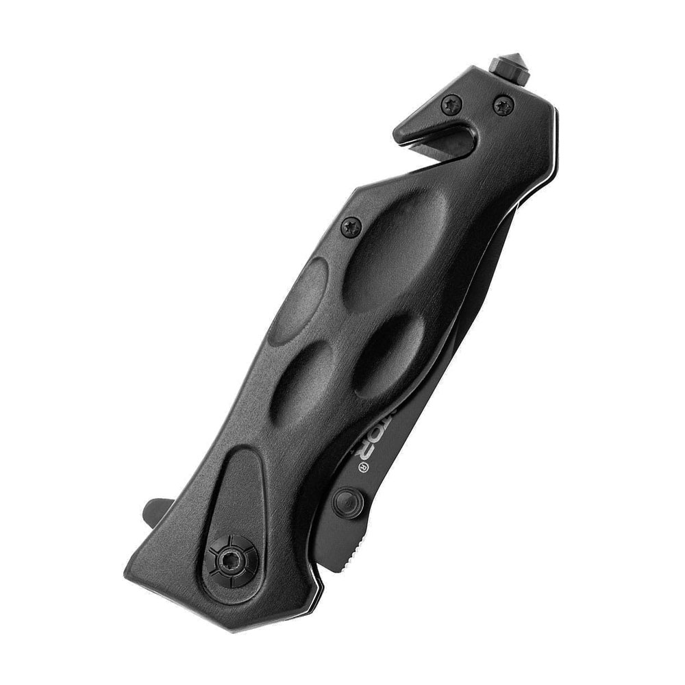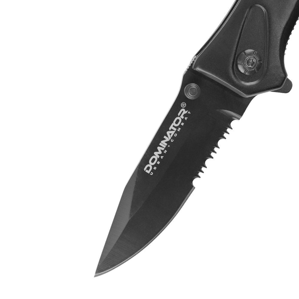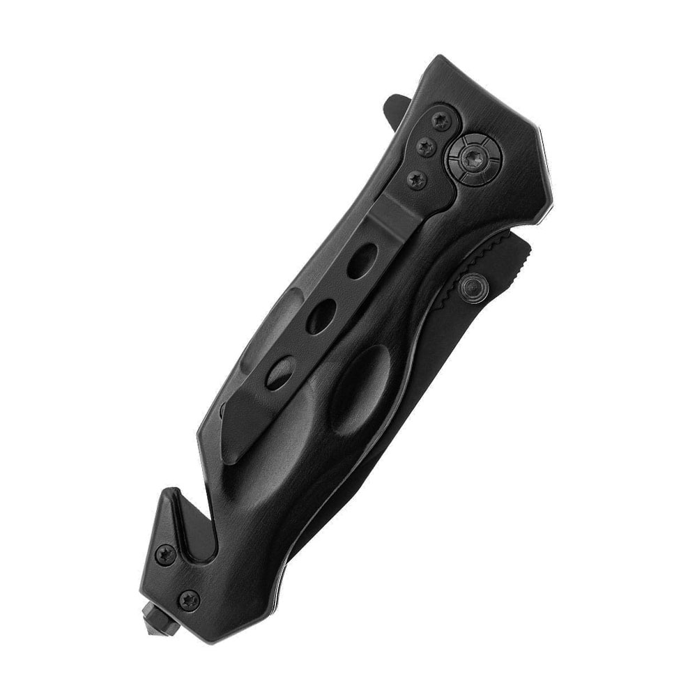 Ostrze jest częściowo ząbkowane oraz częściowo gładkie. Część ząbkowana pozwala na precyzyjność wykonywanych cięć czy piłowania, a także szybkiego rozrywania. Ostrze blokowane jest pewną i solidną blokadą Liner-Lock - która zapobiega przypadkowemu złożeniu noża podczas używania. Model wyposażony w zbijak do szyb i dodatkowe ostrze do cięcia pasów.