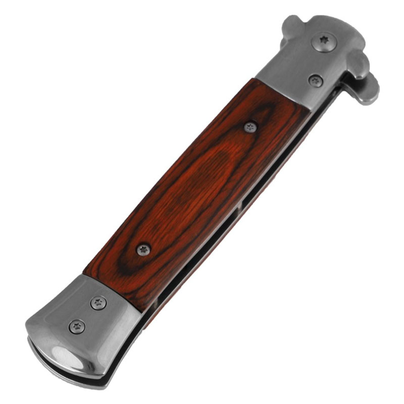 Nóż swoją stylistyką przypomina klasyczne, składane noże włoskie. Posiada wysokiej jakości ostrze wykonane ze stali nierdzewnej 440, które idealnie współgra z drewnianą okładziną rękojeści.