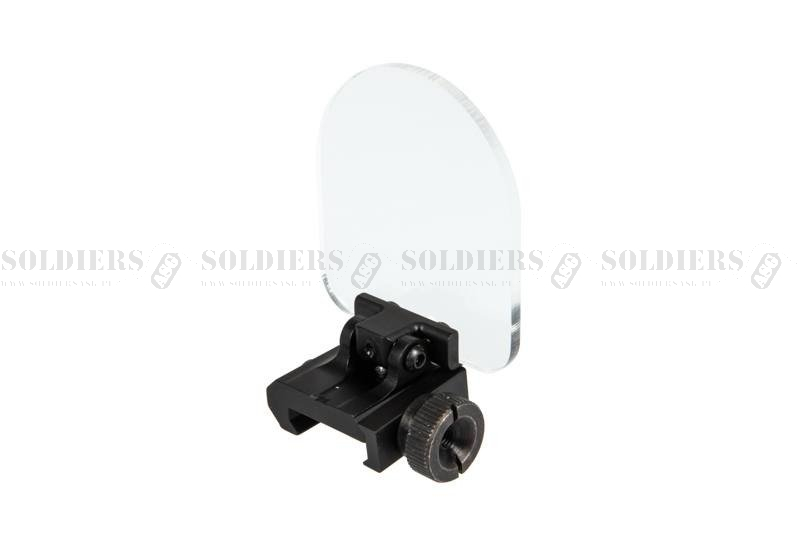 Osłona przeznaczona jest do mocowania na dowolnej szynie RIS 22mm. Produkt został wykonany z wytrzymałego tworzywa sztucznego (szybka ochronna) i z metalu (podstawa). Szybka przykręcamy do podstawy przy pomocy 2 śrub. Osłonę wyposażono w system Flip-Up pozwalający na jej "położenie" w momencie, w którym nie jest potrzebna. W skład zestawu wchodzą też 2 szybki: przeźroczysta i żółta.