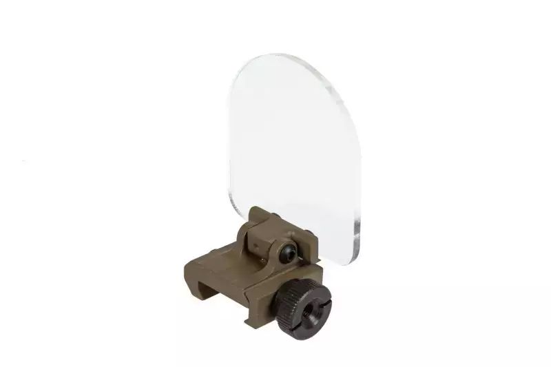 Osłona przeznaczona jest do mocowania na dowolnej szynie RIS 22mm. Produkt został wykonany z wytrzymałego tworzywa sztucznego (szybka ochronna) i z metalu (podstawa). Szybka przykręcamy do podstawy przy pomocy 2 śrub. Osłonę wyposażono w system Flip-Up pozwalający na jej "położenie" w momencie, w którym nie jest potrzebna. W skład zestawu wchodzą też 2 szybki: przeźroczysta i żółta.