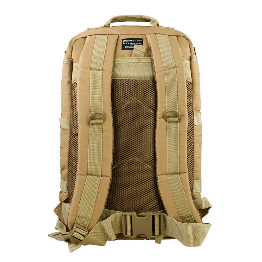 Laser Cut to najnowsza wersja systemu Molle, gdzie miejsca na taśmy modularne zostały wycięte laserem bezpośrednio w tkaninie. Wykonany z mocnego Poliestru 600D, odpornego na przetarcia i przedarcia. Wewnątrz znajduje się wodoodporna wyściółka PVC zwiększająca ochronę przed deszczem. Szycia wykonano wytrzymałą nicią polipropylenową.
