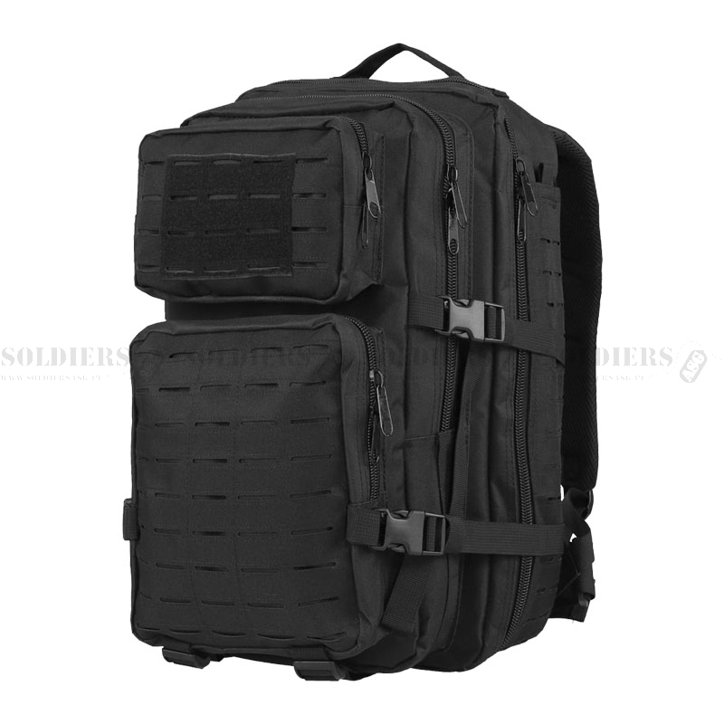 Dolna komora przednia posiada miniorganizer pozwalający na uporządkowane rozmieszczenie drobnych przedmiotów, jak np. długopisy, klucze, noże, latarki, notatniki. Na froncie przedniej komory górnej znajduje się rzepowy panel Velcro umożliwiający przyczepienie plakietek i emblematów. Zintegrowana kieszeń na systemy hydracyjne (bukłaki) zamykana na rzep ukryta została pod częścią plecową. Po bokach z obu stron pod panelami Laser Cut znajdują się dodatkowo 2 kieszenie zamykane na rzep.