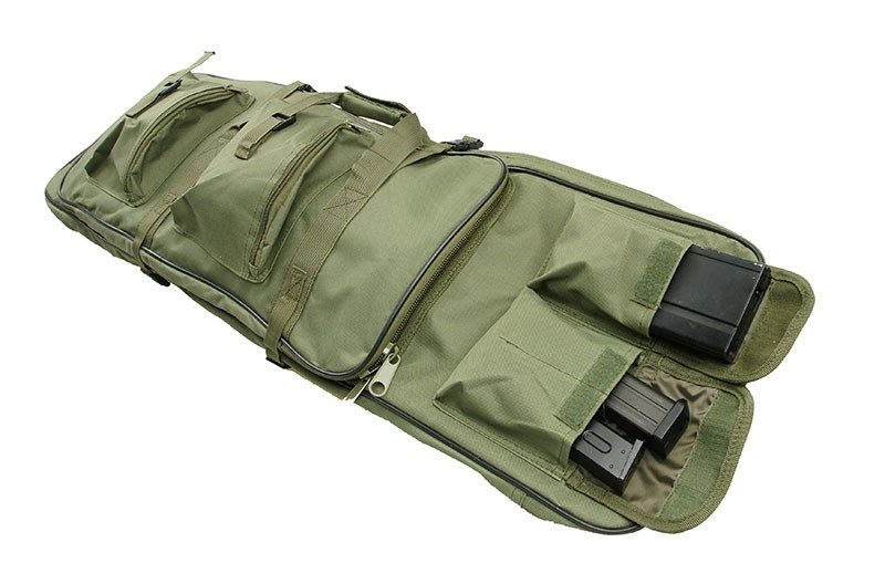 Torba posiada dodatkowo trzy kieszenie zewnętrzne na dodatkowe/zapasowe części bądź magazynki, czwarta kieszeń po wewnętrznej stronie ciągnie się przez całą długość pokrowca.