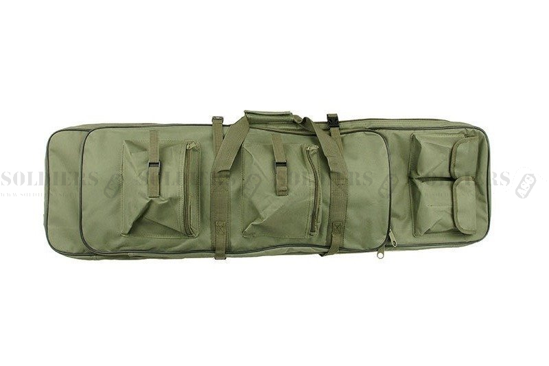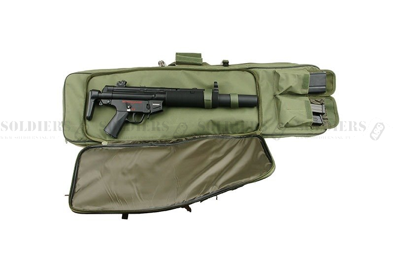 Pokrowiec na broń posiada dwie kieszenie do przenoszenia karabinów, krótsza komora umożliwia przenoszenie broni o długości do 65 cm oraz dłuższa umożliwiająca przenoszenie karabinka do 96 cm wewnątrz a przy wykorzystaniu składanego kaptura 110 cm.