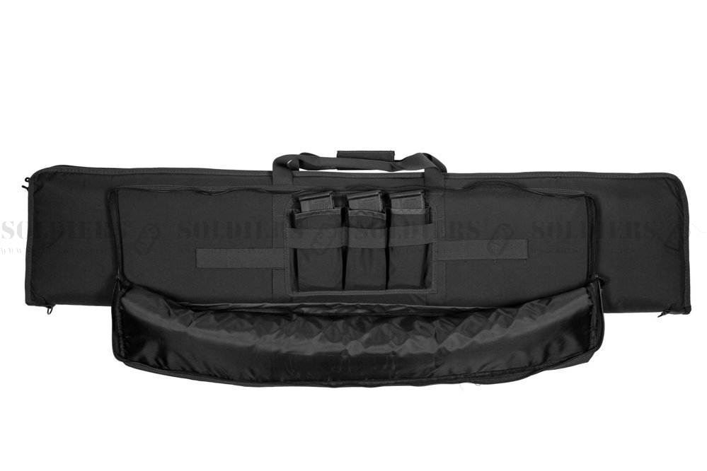 Wewnątrz głównej komory znajdują się sześć pasów stabilizujących. Mniejsza komora o wymiarach 900x220mm posiada trzy ładownice mieszczące po dwa magazynki każda oraz elastyczne pasy utrzymujące dodatkowe akcesoria na miejscu. Z zewnątrz została obszyta taśmami MOLLE pozwalającym na rozbudowanie pokrowca o dodatkowe kieszenie. Całość jest chroniona przy pomocy miękkiej gąbki.