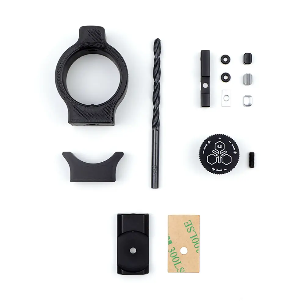 Wszystkie elementy zostały wykonane z CNC-obrobionego aluminium oraz nylonu, co zapewnia doskonałe dopasowanie i brak luzów. Wytrzymała konstrukcja gwarantuje niezawodność podczas intensywnego użytkowania.