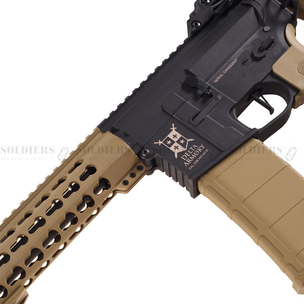 Nowa generacja AR15 - M4 od Delta Armory. Seria Charlie charakteryzuje się wysokiej jakości częściami wewnętrznymi, takimi jak tłok SHS z pełnymi metalowymi zębami, opóźniacz zębatki SHS, rotacyjna komora Hop-up, wzmacniany gearbox, który wytrzymuje sprężyny M120 - M130, lufa wewnętrzna 6,03 mm.