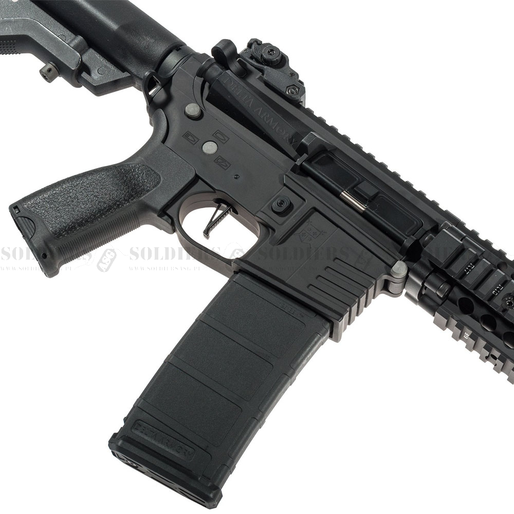 Replika posiada regulowany tylny celownik, zamontowany na szynie RIS. oraz wykonany z metalu CNC front ze standardowymi szynami RIS 22 mm. Zaletą tego karabinu jest szybka wymiana sprężyny QRS gen. 2 - wymiana sprężyny bez demontażu karabinu i szybka wymiana silnika QRS.