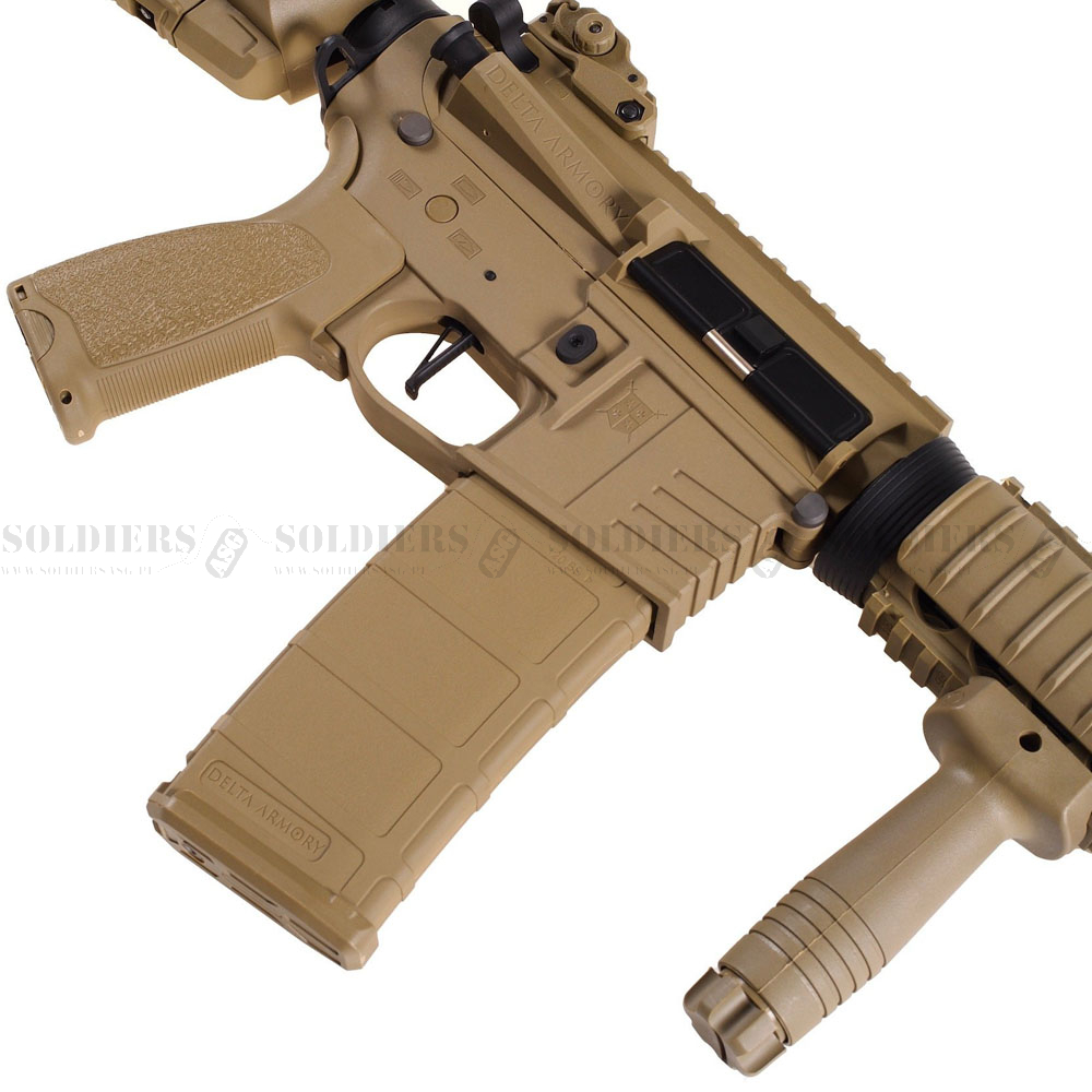 Zestaw zawiera replikę, magazynek M4 DMAG Mid-Cap 120BB, chwyt taktyczny. Bateria i ładowarka nie wchodzą w skład zestawu.
