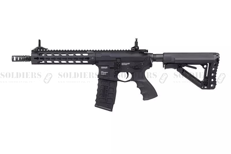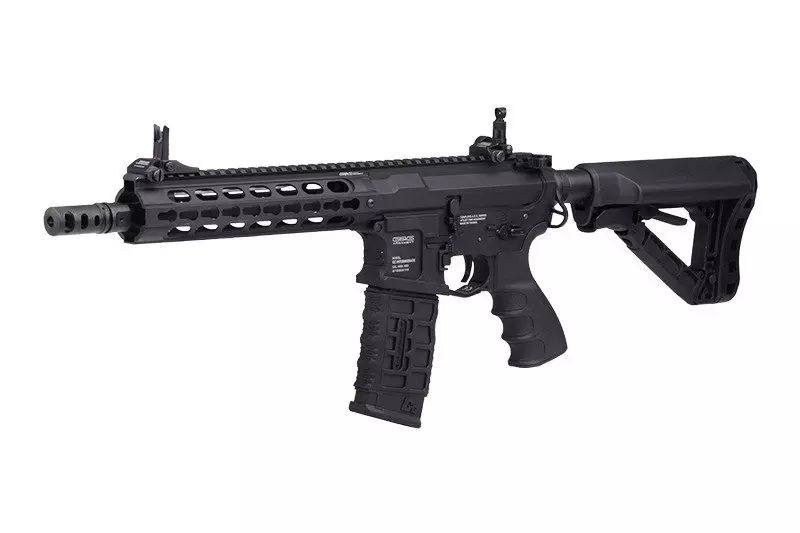 Kolba jest regulowana, co pozwala na dostosowanie długości karabinka do budowy i preferencji strzelca. Wyprofilowany chwyt pistoletowy zapewnia jak najlepsze dopasowanie do dłoni. Tłumik płomienia osadzony jest na 14mm lewoskrętnym gwincie.