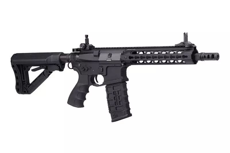 Replika jest świetnie dostosowana do działań na średnim dystansie dzięki prędkości wylotowej rzędu ~340 FPS. Szyna RIS zamontowana na grzbiecie pozwala na przyłączenie dowolnego urządzenia optycznego. Do zestawu dostajemy składane, mechaniczne przyrządy celownicze typu flip-up.