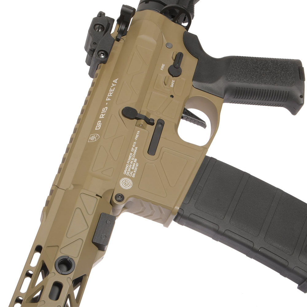 R15 FREYA to licencjonowane airsoftowe repliki prawdziwych karabinów słowackiego producenta Grandpower. Różnią się głównie nowoczesnym designem korpusu, który został zaprojektowany na Słowacji. Delta Armory dodała do serii FREYA swój najnowszy opto-magnetyczny procesor Eagle ETU, który zapewnia szybką reakcję spustu, jednocześnie czyniąc replikę gotową do użycia z akumulatorami LiPo 11.1V. Oczywiście jest złącze Deans-T, które zastąpiło klasyczne złącze Tamiya.
