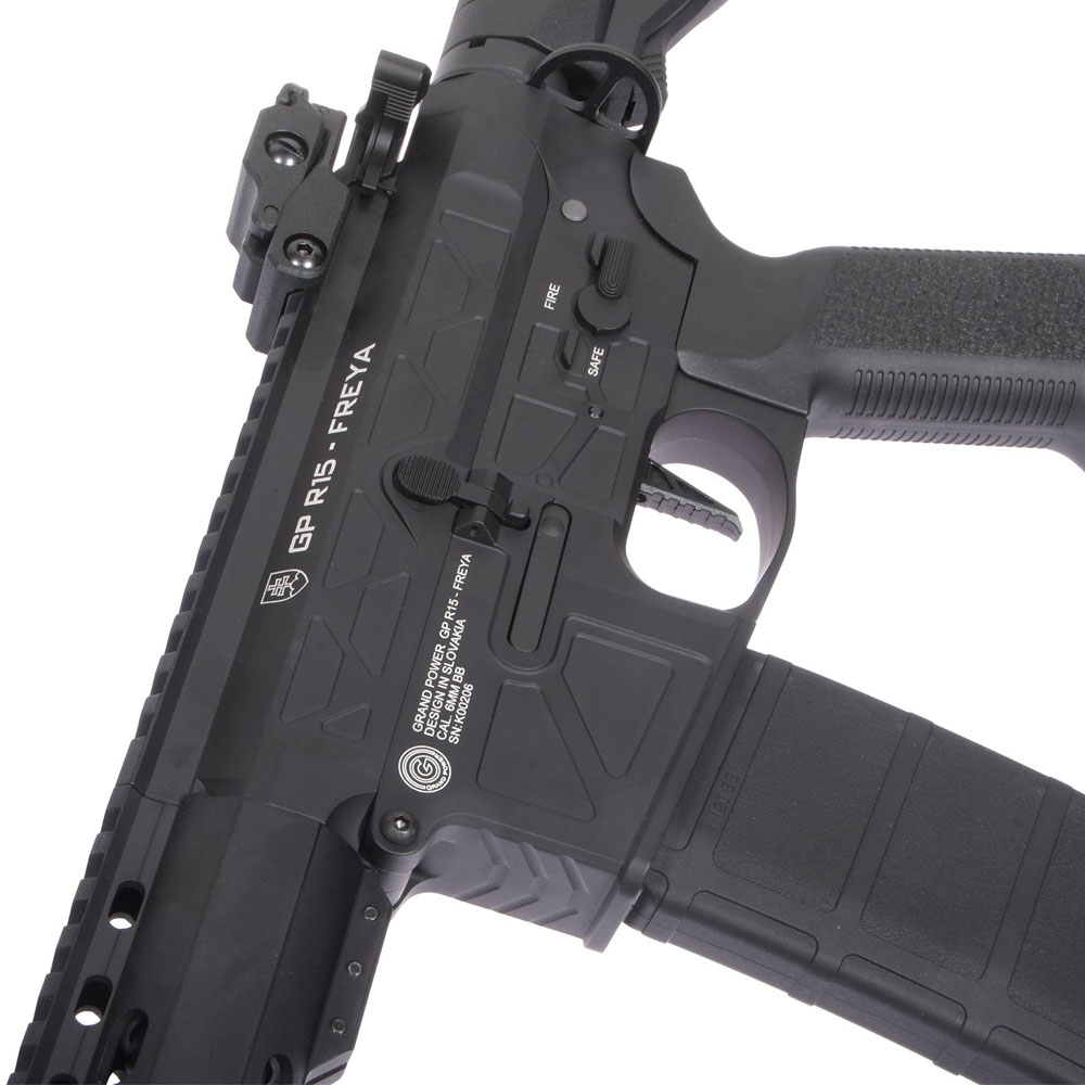 R15 FREYA to licencjonowane airsoftowe repliki prawdziwych karabinów słowackiego producenta Grandpower. Różnią się głównie nowoczesnym designem korpusu, który został zaprojektowany na Słowacji. Delta Armory dodała do serii FREYA swój najnowszy opto-magnetyczny procesor Eagle ETU, który zapewnia szybką reakcję spustu, jednocześnie czyniąc replikę gotową do użycia z akumulatorami LiPo 11.1V. Oczywiście jest złącze Deans-T, które zastąpiło klasyczne złącze Tamiya.
