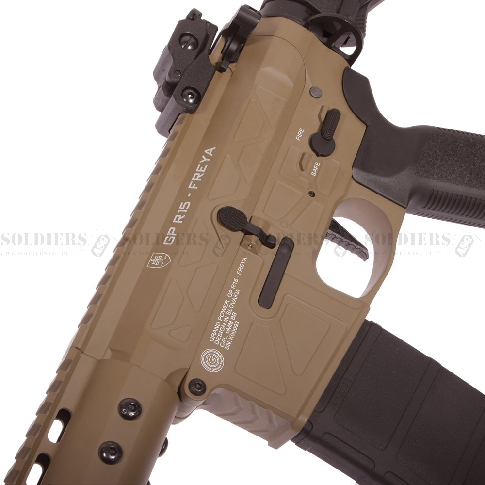R15 FREYA to licencjonowane airsoftowe repliki prawdziwych karabinów słowackiego producenta Grandpower. Różnią się głównie nowoczesnym designem korpusu, który został zaprojektowany na Słowacji. Delta Armory dodała do serii FREYA swój najnowszy opto-magnetyczny procesor Eagle ETU, który zapewnia szybką reakcję spustu, jednocześnie czyniąc replikę gotową do użycia z akumulatorami LiPo 11.1V. Oczywiście jest złącze Deans-T, które zastąpiło klasyczne złącze Tamiya.