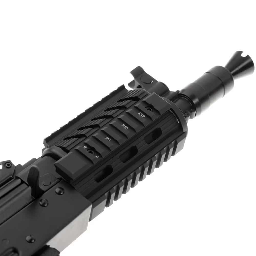 Model został wyposażony w regulowaną kolbę typu AR15 oraz taktyczny front wykonany z aluminium z systemem szyn Picatinny na wszystkich bokach – umożliwia to montaż szerokiej gamy akcesoriów, takich jak chwyt przedni, latarka czy celowniki optyczne.