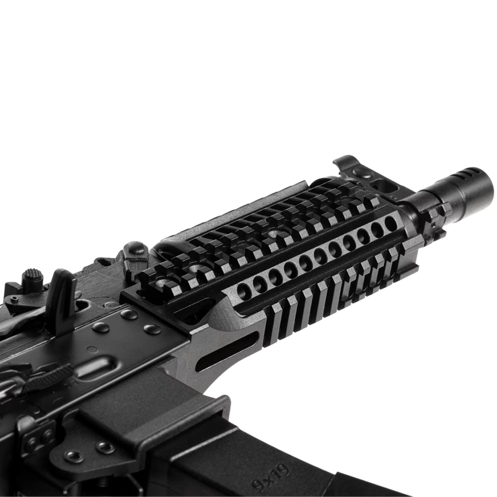 Dzięki kompaktowym wymiarom ZP-19-01 doskonale sprawdzi się w starciach na krótkim i średnim dystansie, a także w dynamicznych scenariuszach CQB. Fabrycznie zamontowany front został wykonany z aluminium i wyposażony w dwuczęściowy chwyt przedni z systemem Picatinny na górze, dole i bokach, co pozwala na montaż akcesoriów według indywidualnych preferencji. Pokrywa komory zamkowej na zawiasie jest solidnie skręcona z dolną częścią frontu, zapewniając stabilność i pewne trzymanie zera. Lufa zakończona jest gwintem 14 mm CCW, co umożliwia montaż różnych urządzeń wylotowych i tłumików dźwięku.